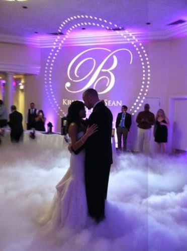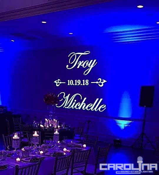 We create your gobo monogram, deliver, set up and run power to the projector. We include an