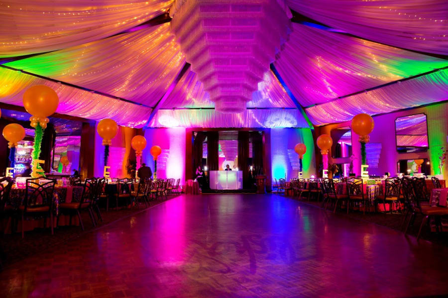 One of the most requested services. Uplighting can change the ambiance of a room by adding elegance via color. Uplights can be customized in any color and can be arranged in any part of the venue of your event as they are wireless and do not require any electrical outlet