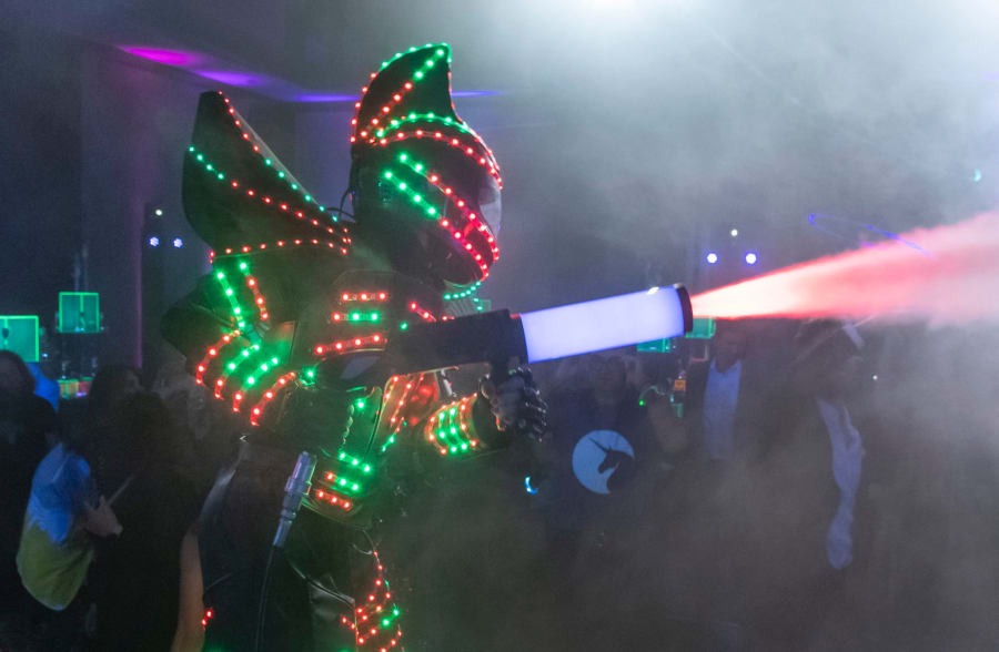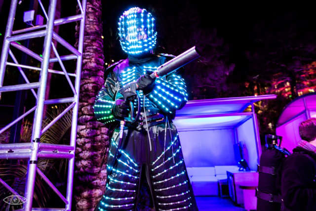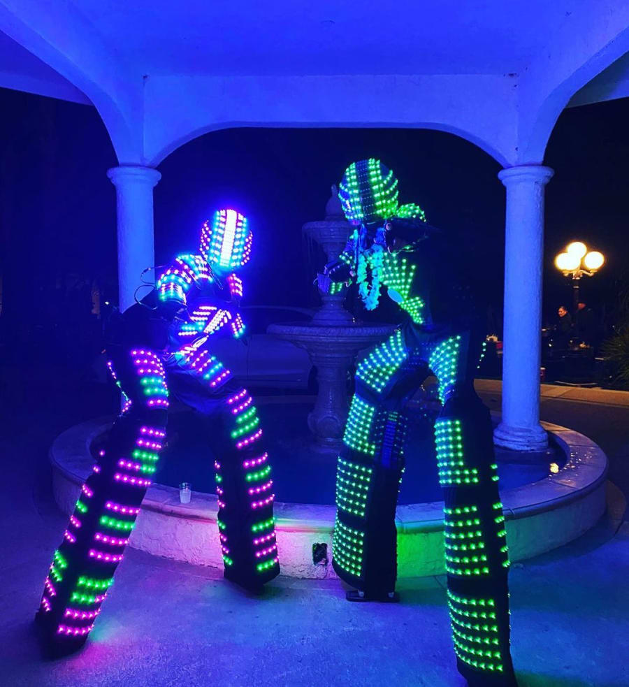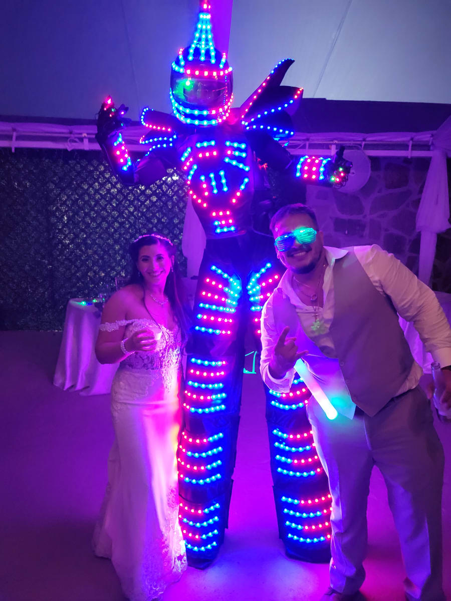 If you’re looking for an over-the-top addition to your event, this is it. Our LED robots on stilts, are over 10 feet tall with over 300 LED lights wirelessly controlled by a dedicated light technician to the beat of the music or your theme and colors.