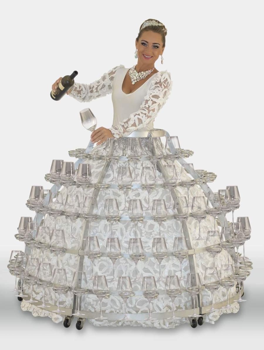 Looking for a unique way to greet your guests? Our Strolling Champagne dresses' are the perfect way to serve your guest's drinks with a touch of class and elegance.