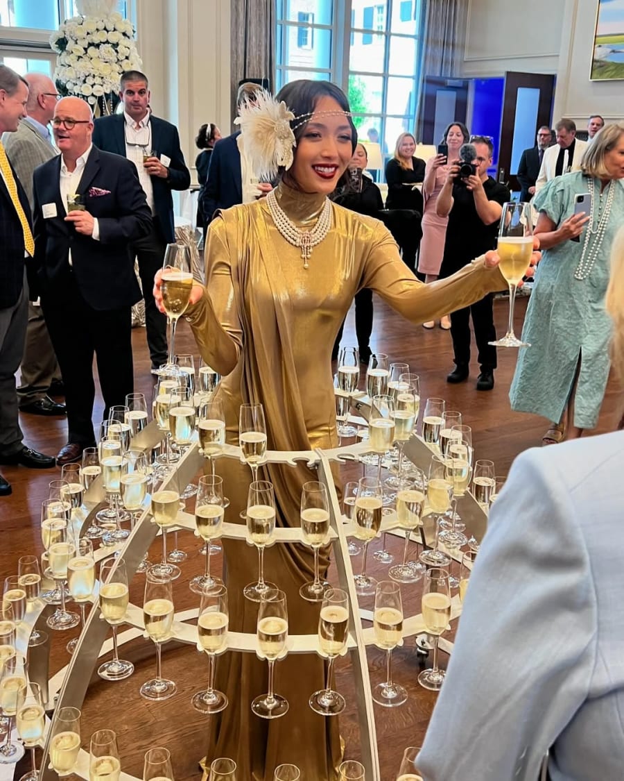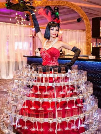 Each one of our Strolling Champagne performers can customize their costume to suit your event